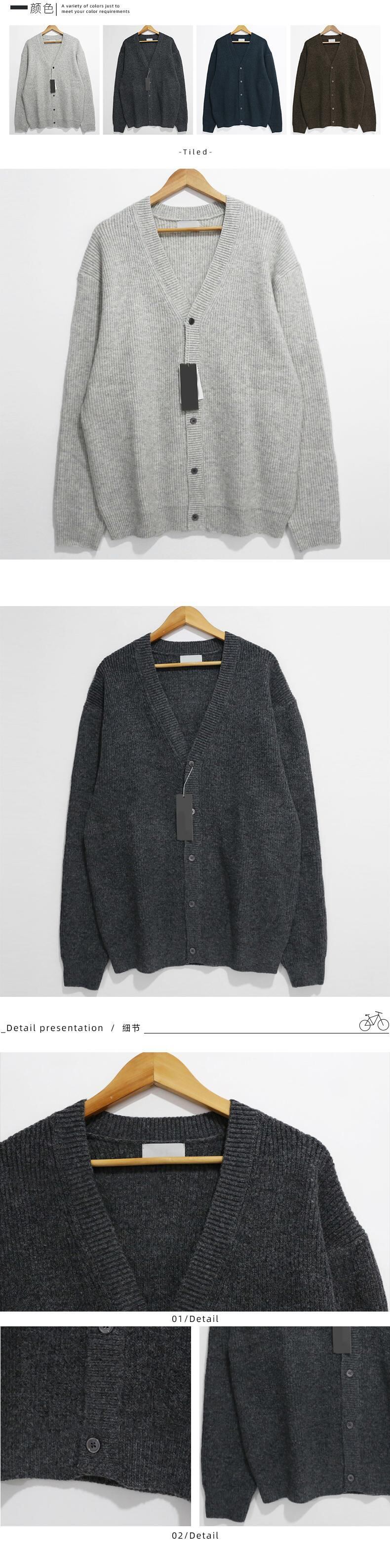 2022年春新作無地ニットカーディガンジャケットメンズ厚手ルーズカジュアルセーター怠惰なウインドポートスタイルオールマッチ スプリング 春物 ソリッドカラー BLUU80329753077