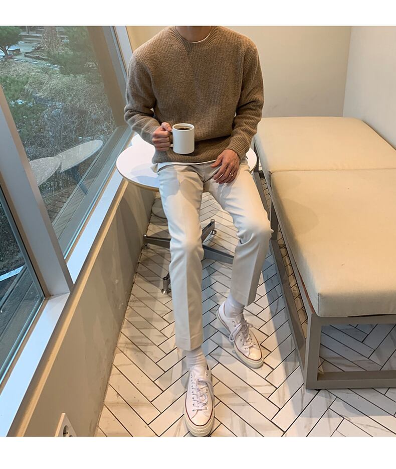 2022年冬の無地ラウンドネックセーターメンズシックバージョントレンドルーズハイエンドニットセーター ウィンター 冬物 Oネック ソリッドカラー BLUU98453076380