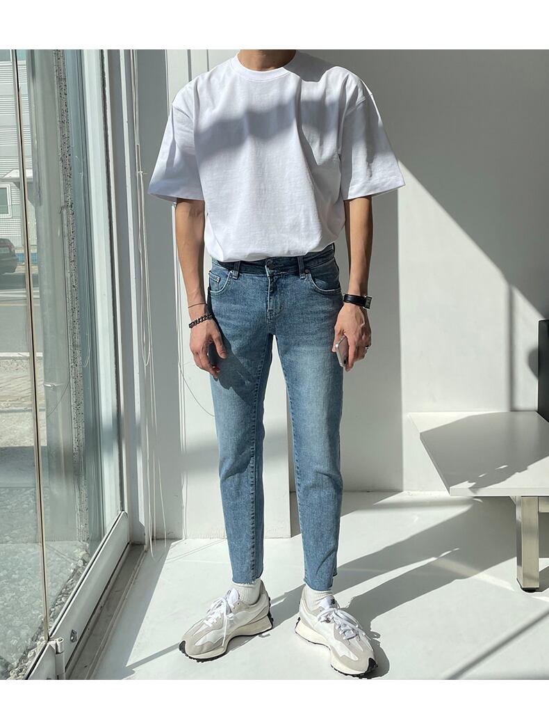 2022年新作ジーンズメンズスリムスモールフィートタイドブランドパンツバージョントレンドオールマッチライトカラー9点カジュアルパンツ BLUU10711479569