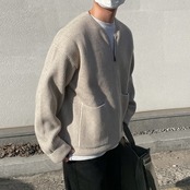 2022年春新作無地ニットカーディガンコートルーズジッパーセーターメンズレトロイーズレイジースタイルオールマッチ スプリング 春物 ソリッドカラー BLUU61954434575