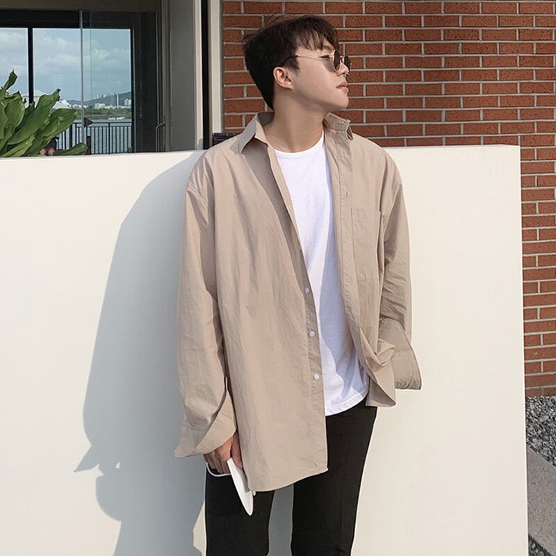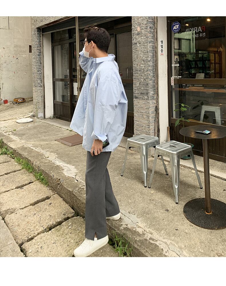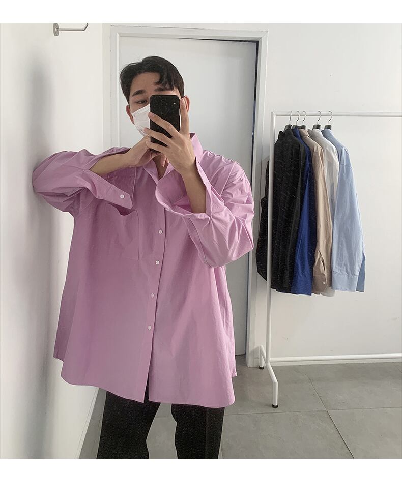 2022年の新しい非常に妖精のシャツ男性ルフィアンハンサムバージョントレンドカジュアル長袖シャツコート香港スタイルのeseスタイルオールマッチ ロング BLUU40060996679