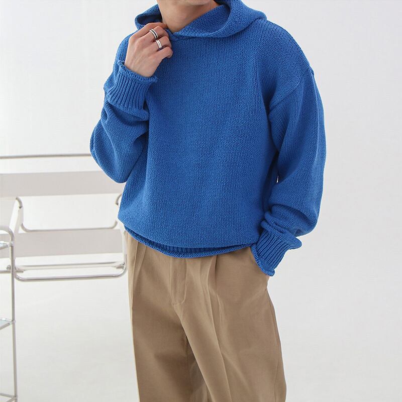 フード付きセーターメンズタイドブランドルーズバージョントレンドハンサム無地ニットセーターカジュアルジャケット香港スタイルオールマッチのバージョン ソリッドカラー BLUU9257724484