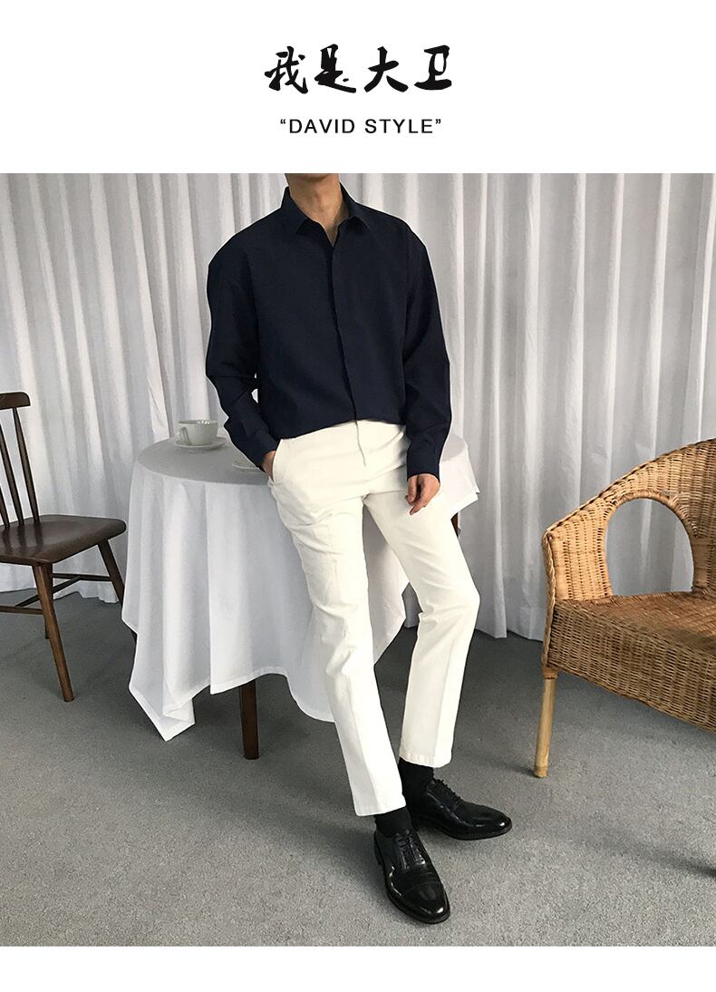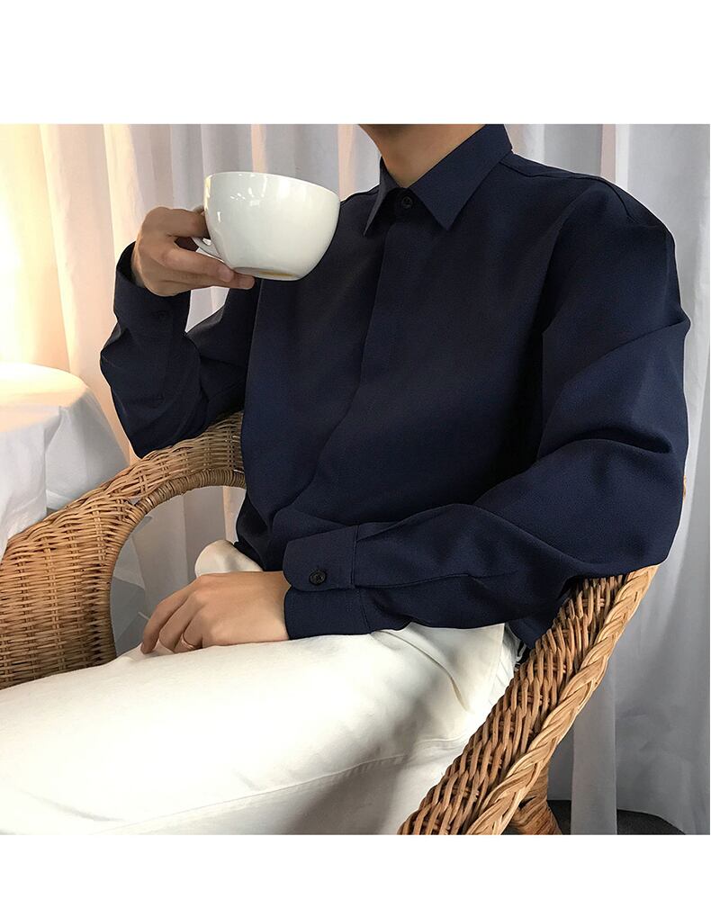 トレンドハンサムジャケットカジュアル香港スタイルシャツルーズタイドブランドの長袖シャツメンズバージョンesetbruffianハンサム ロング BLUU76019959046