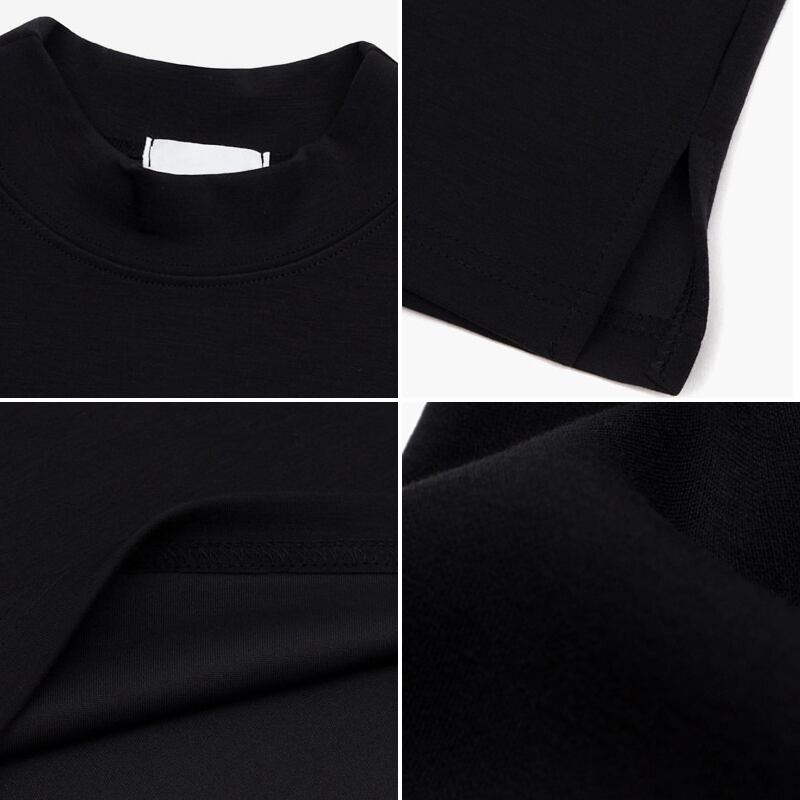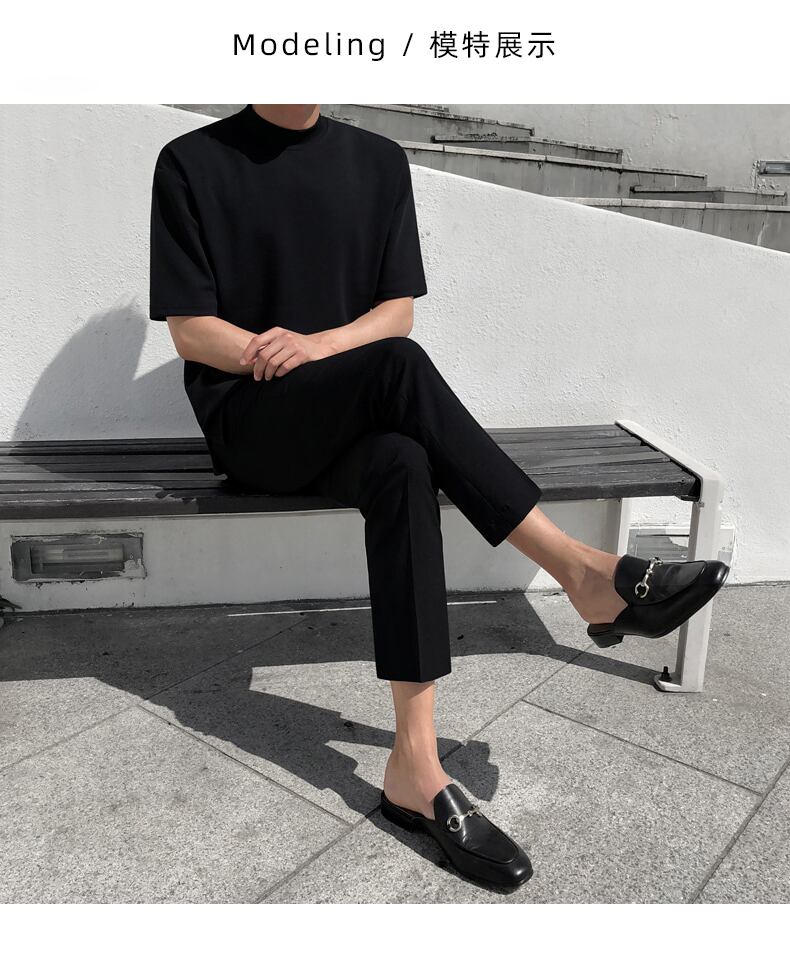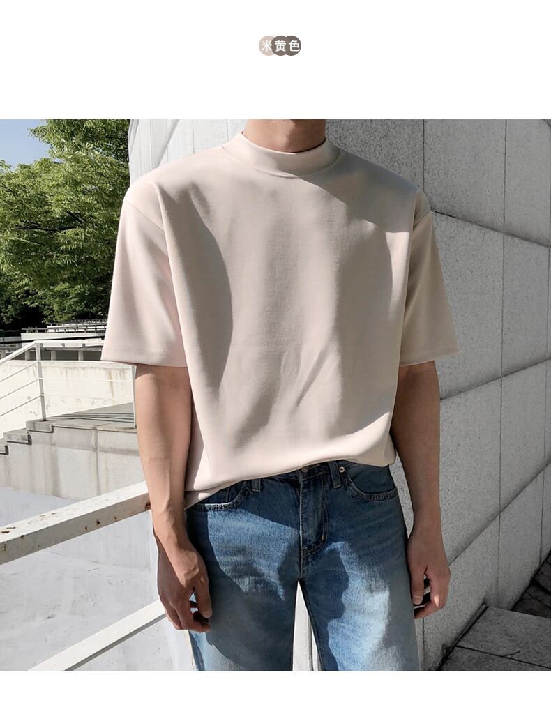 ハーフハイカラー半袖Tシャツメンズピュアコットン香港スタイルルーズ無地半袖ボトミングシャツトップバージョンオールマッチTシャツトレンド ソリッドカラー BLUU41024466291