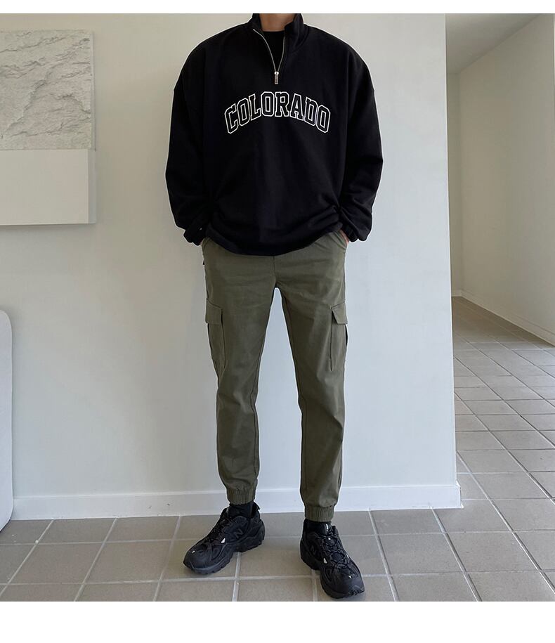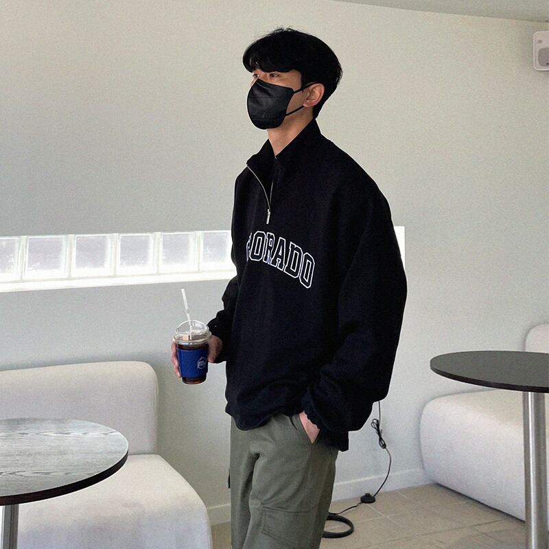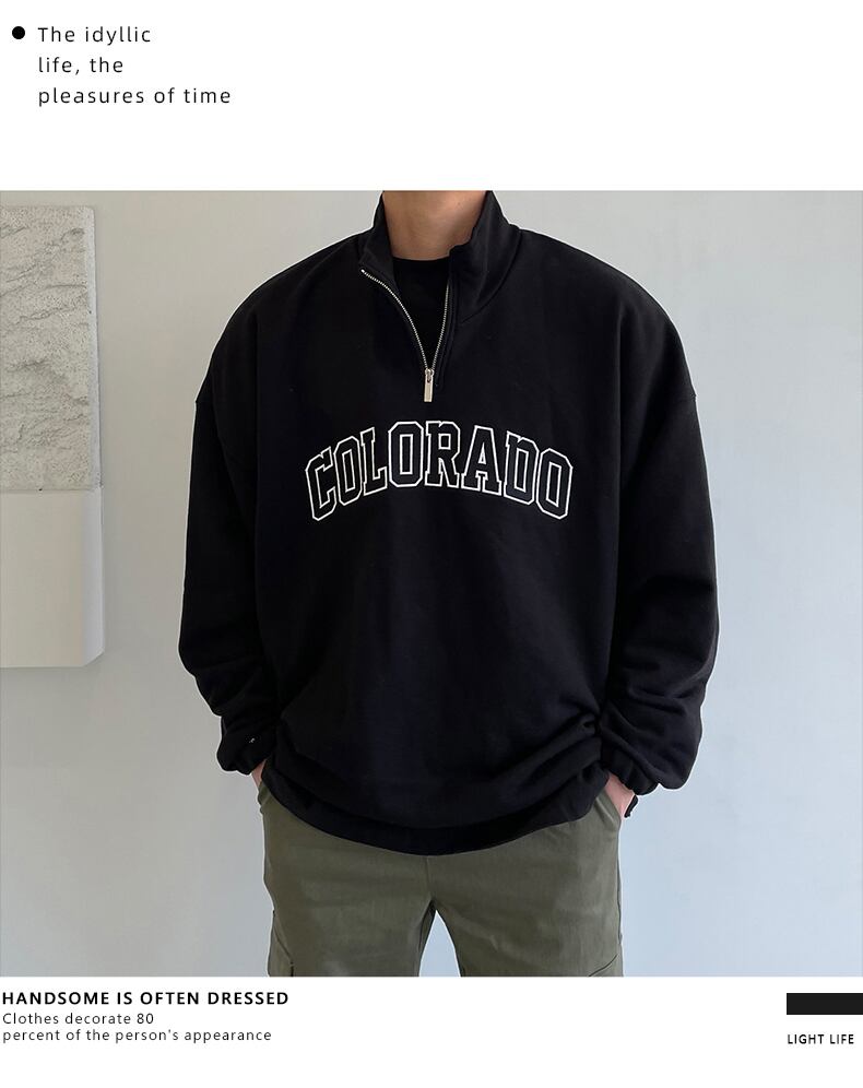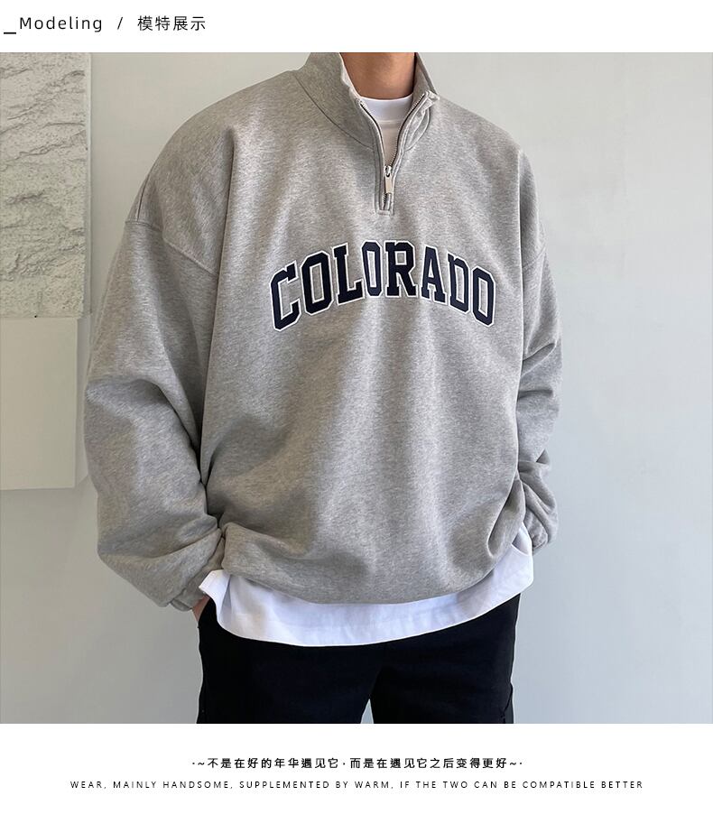 2022年春の新作スタンドカラージッパーセーターメンズトレンディインルーズバージョントレンド香港スタイル無地トップコート スプリング 春物 ソリッドカラー BLUU93518322174