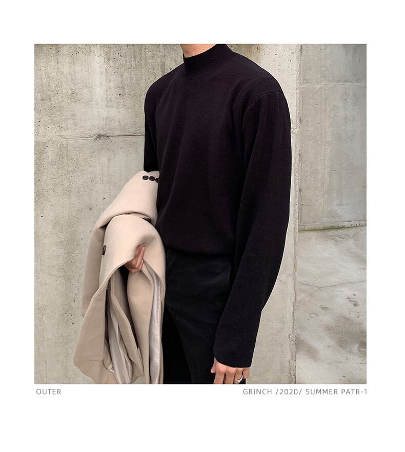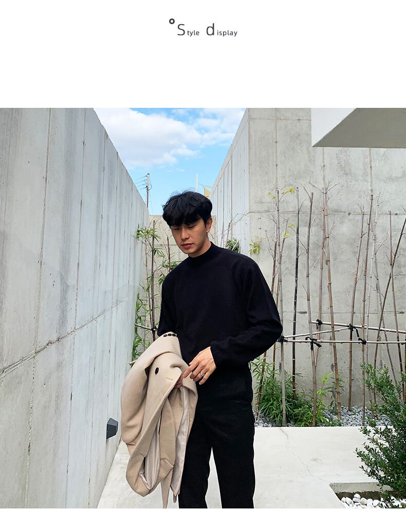2022年春の黒ハーフタートルネックセーターメンズトレンドインナーボトムニットセーターミドルカラーセータージャケット ブラック スプリング 春物 BLUU55750381696