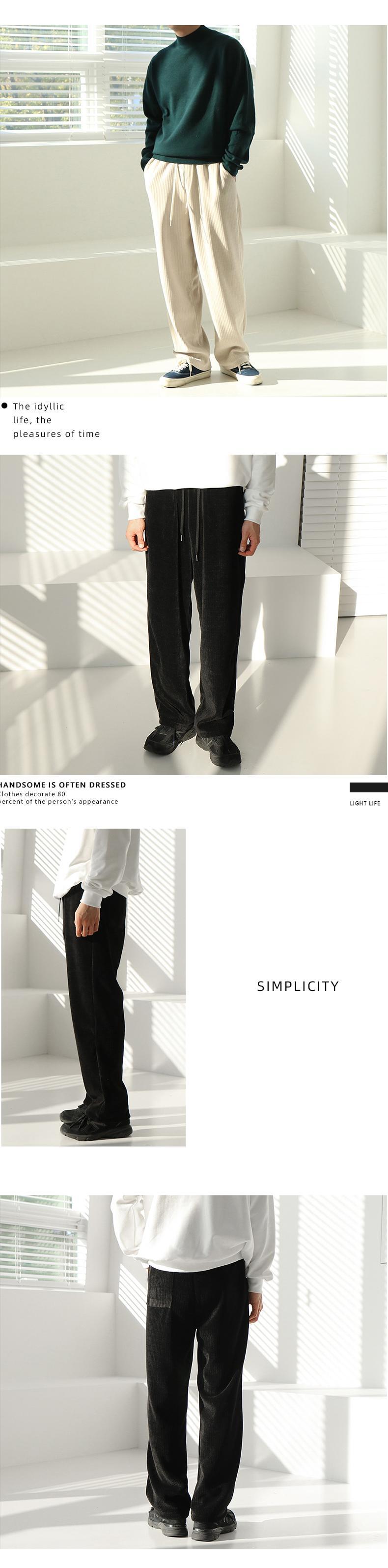 2022年ワイドレッグナインポイントロングパンツフォーリングルーズストレートオールマッチコーデュロイパンツメンズトレンド ワイドパンツ BLUU39246744344