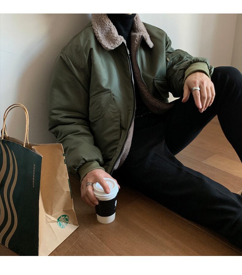 冬の厚みのあるラペルコットンジャケットメンズバージョンのトレンド香港スタイルプラスベルベットコットンジャケットボンバージャケットルーズコットンジャケット ウィンター 冬物 BLUU77092993202
