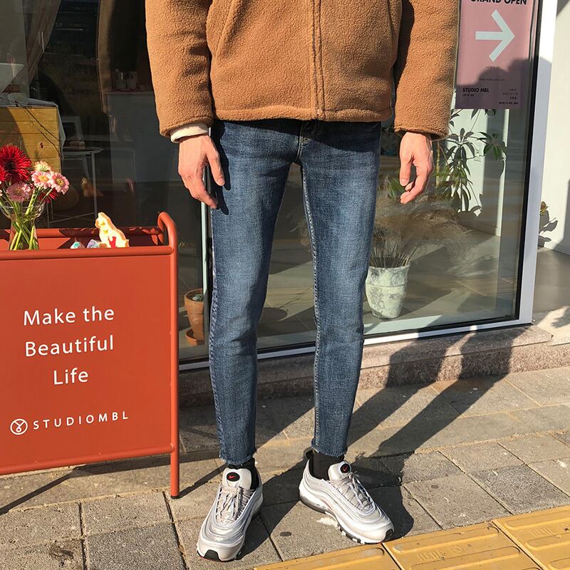 レトロストレッチジーンズメンズタイドブランドインオールマッチストレートスリムスモールフィート9点カジュアルパンツ2022新品 BLUU86778045643