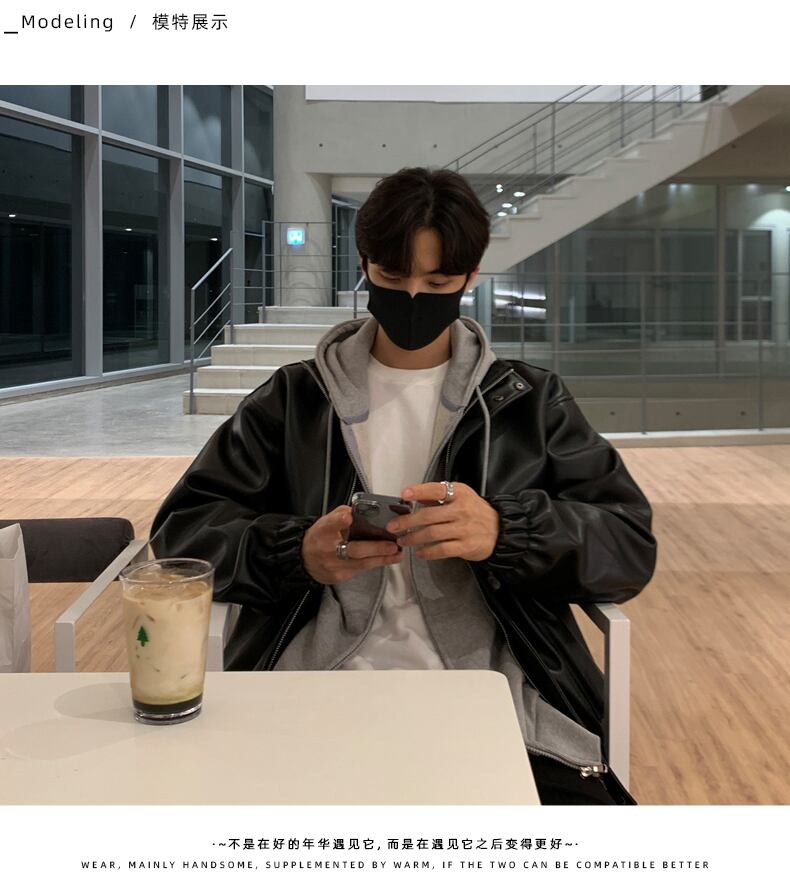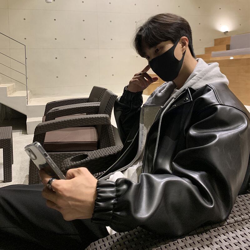 香港スタイルのレトロラペルレザージャケットメンズバージョンのタイドブランドトレンドカジュアルルーズオールマッチモーターサイクルレザージャケットトップコート BLUU91253398089