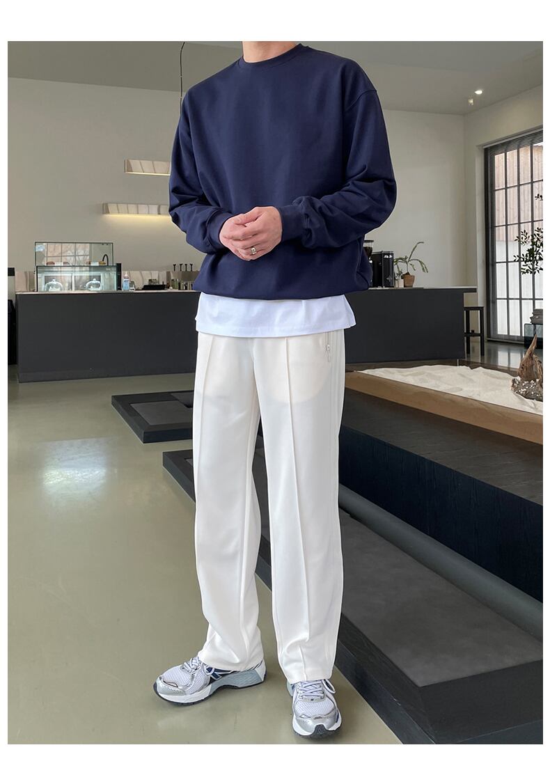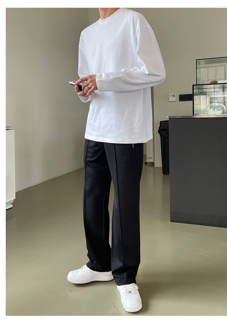 2022年春のラウンドネック長袖Tシャツメンズルーズタイドブランド香港スタイルオールマッチ無地純綿シンプルボトミングシャツTシャツ ロング コットン スプリング 春物 Oネック ピュア ソリッドカラー BLUU21018105554