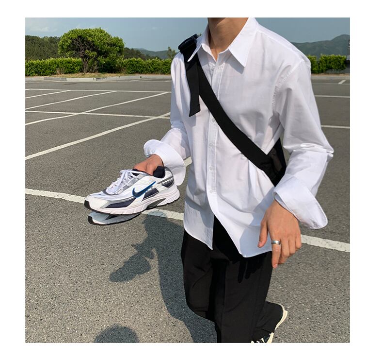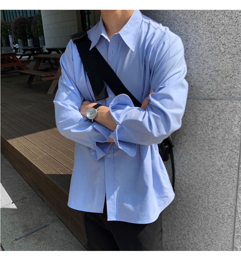 シャツメンズルーズバージョントレンドラペル長袖無地シャツハンサムカジュアルオールマッチトレンディジャケットインチシャツトレンディ ロング ソリッドカラー BLUU77469705669