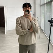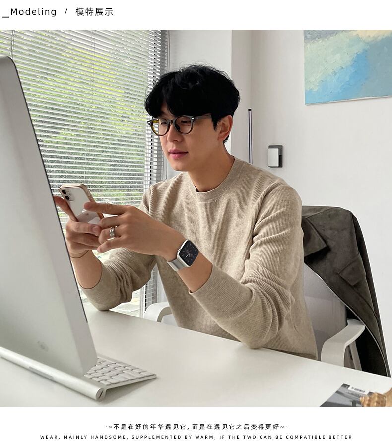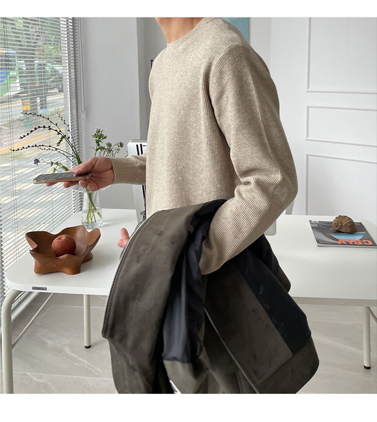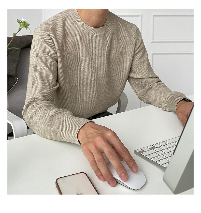 2022年春の新作ラウンドネック無地ニットセーターメンズバージョントレンド香港スタイルカジュアルボトミングセーター スプリング 春物 Oネック ソリッドカラー BLUU98782918191