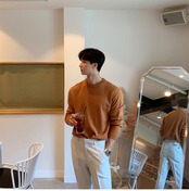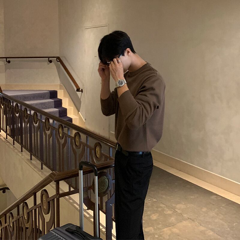 香港スタイルバージョンの春の新しいセーターメンズトレンドルーズで怠惰な風ラウンドネック無地ニットセーターボトムライン スプリング 春物 Oネック ソリッドカラー BLUU38852436270