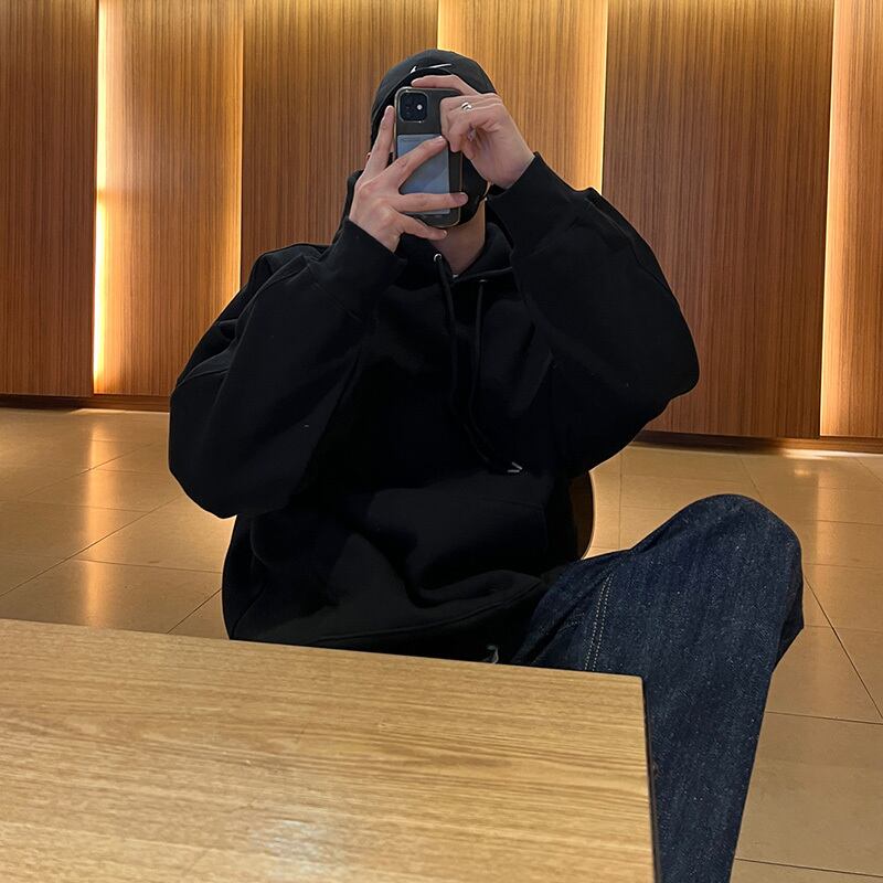 2022年春無地セーターメンズフード付きタイドブランドインルーズバージョントレンドオールマッチプルオーバーカジュアルトップ スプリング 春物 ソリッドカラー BLUU38436194139