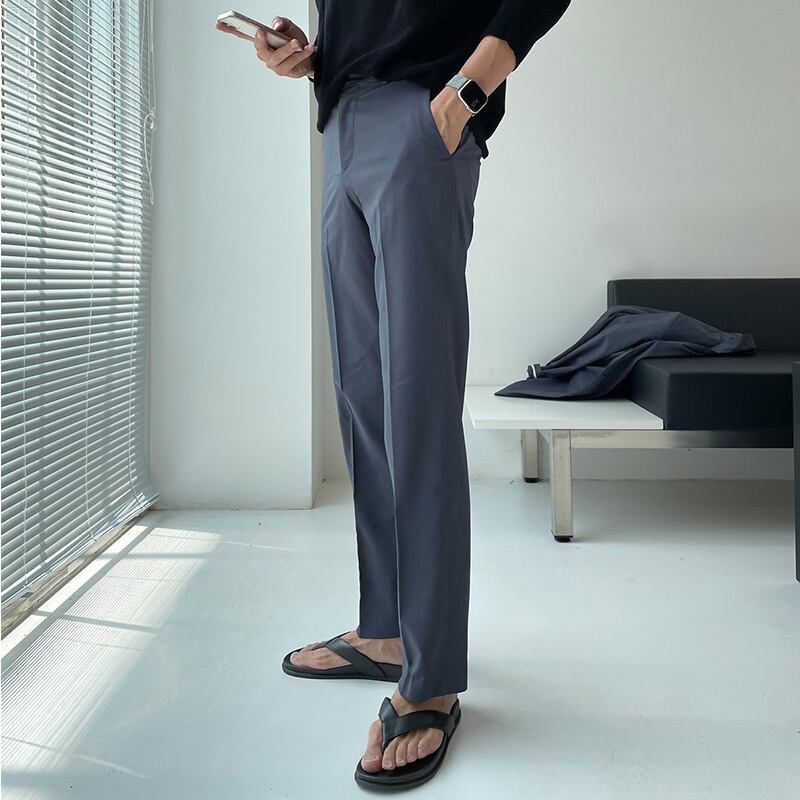2022年夏の薄手のスーツパンツメンズルーズストレートワイドレッグパンツオールマッチバージョントレンドカジュアルロングパンツ サマー 夏物 ワイドパンツ BLUU23799948746