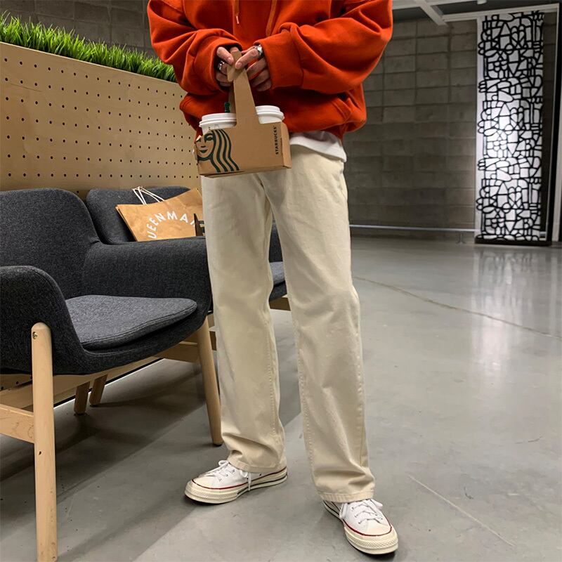 春秋パンツメンズタイドルーズストレートオールマッチトレンド香港スタイルレトロワイドレッグジーンズ スプリング 春物 オータム 秋物 ワイドパンツ BLUU77736923234