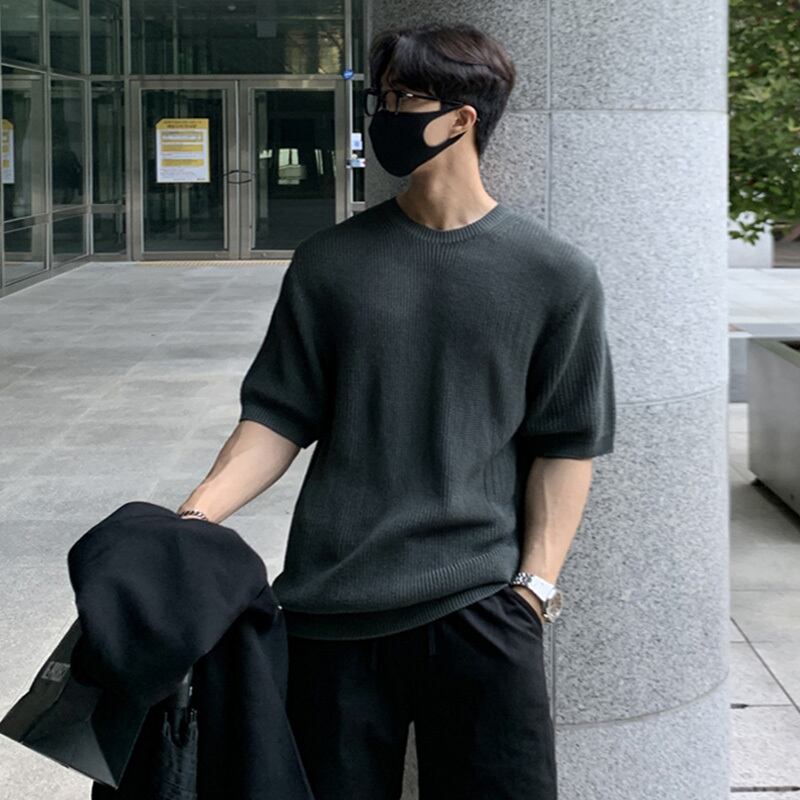 夏の薄手半袖メンズタイドブランドルーズバージョントレンドカジュアルオールマッチ無地Tシャツハーフスリーブボトミングシャツトップス サマー 夏物 ソリッドカラー BLUU28955200257
