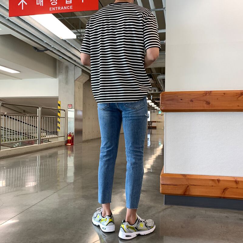 半袖Tシャツメンズトレンディブランドシンプルワイルドバージョンストライプラウンドネック半袖トップコットンユース香港スタイルTシャツ Oネック BLUU93295895396