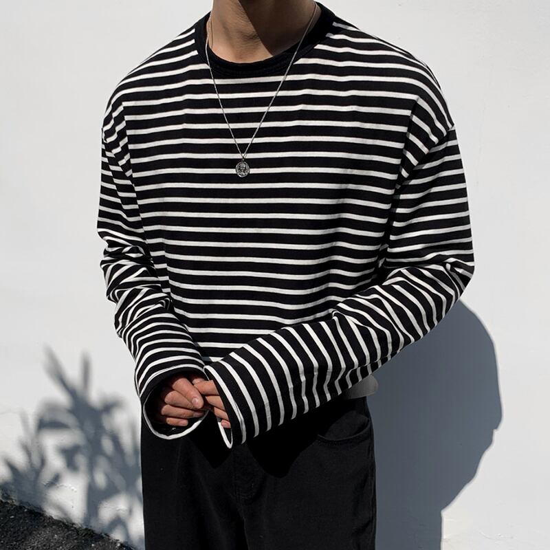 2022年新作ストライプ長袖TシャツメンズコットントレンドルーズラウンドネックボトミングTシャツカジュアルオールマッチ ロング Oネック BLUU59504631993