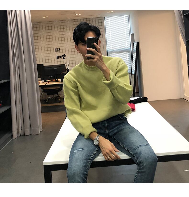 2022年の新しいラウンドネックセーターメンズバージョントレンドプルオーバー無地ニットボトミングシャツジャケットワイルドイン香港スタイル Oネック ソリッドカラー BLUU2455126591