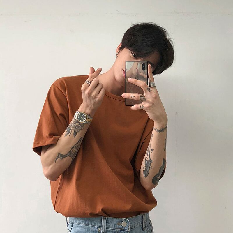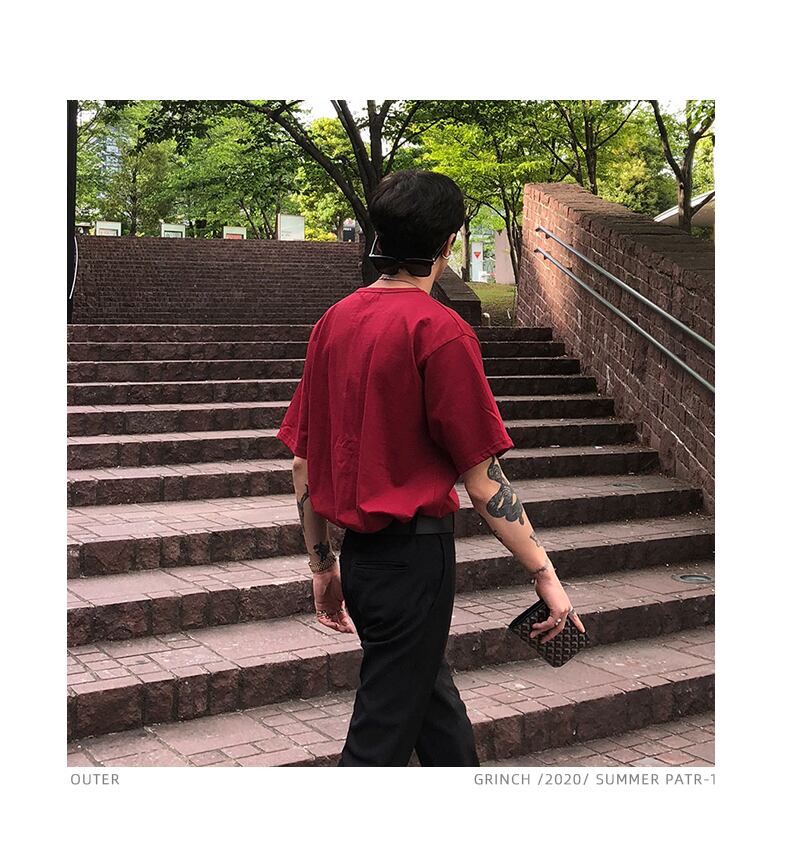 夏の新作半袖メンズタイドブランドコットンバージョンルーズ無地ハーフスリーブトップス香港スタイルTシャツレトロワイルド サマー 夏物 ソリッドカラー BLUU44512197674