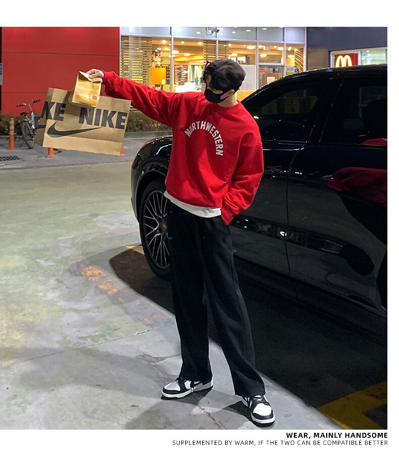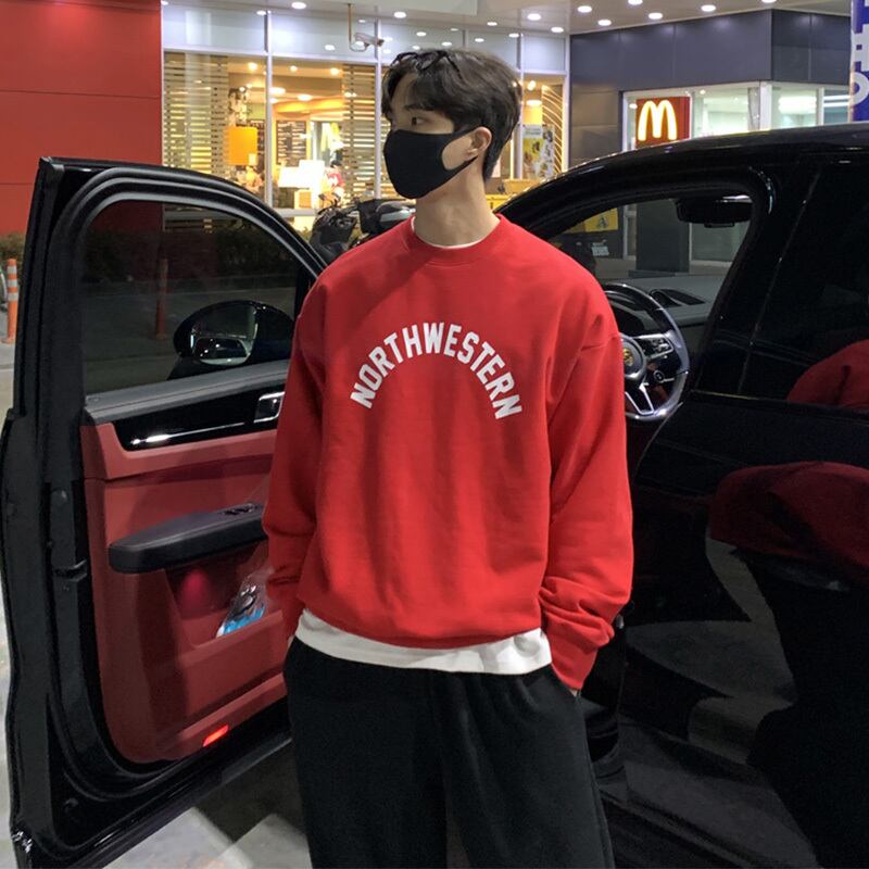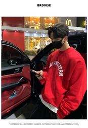 春セーターメンズラウンドネックバージョントレンディなハンサムレタープリントトップルーズカジュアルオールマッチ長袖Tシャツトレンド ロング スプリング 春物 Oネック BLUU45509934352