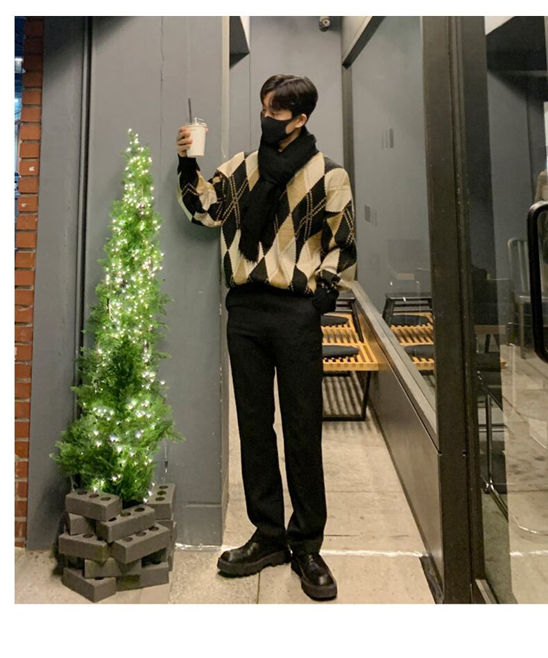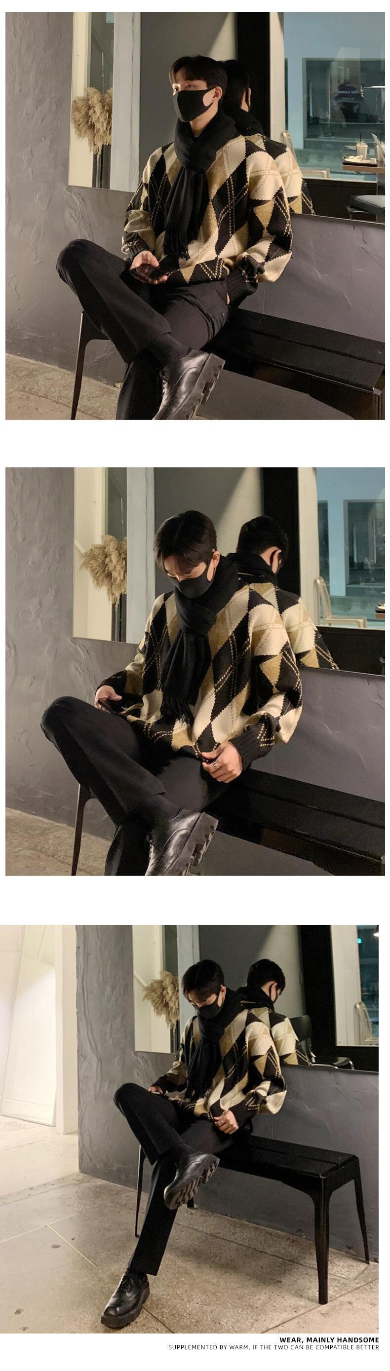 2022年秋冬新作セーターメンズルーズで怠惰なトレンドオールマッチダイヤモンド型ニットセーター香港スタイルレトロコート オータム 秋物 ウィンター 冬物 BLUU38845336297
