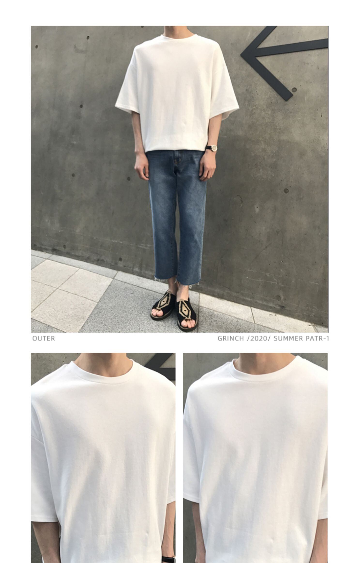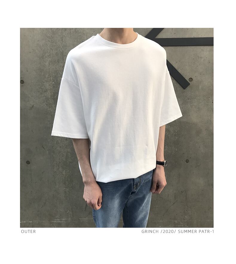 夏の新作半袖メンズTシャツトレンドバージョンルーズオールマッチ無地コットンラウンドネックハーフスリーブTシャツトップ サマー 夏物 Oネック ソリッドカラー BLUU561313293