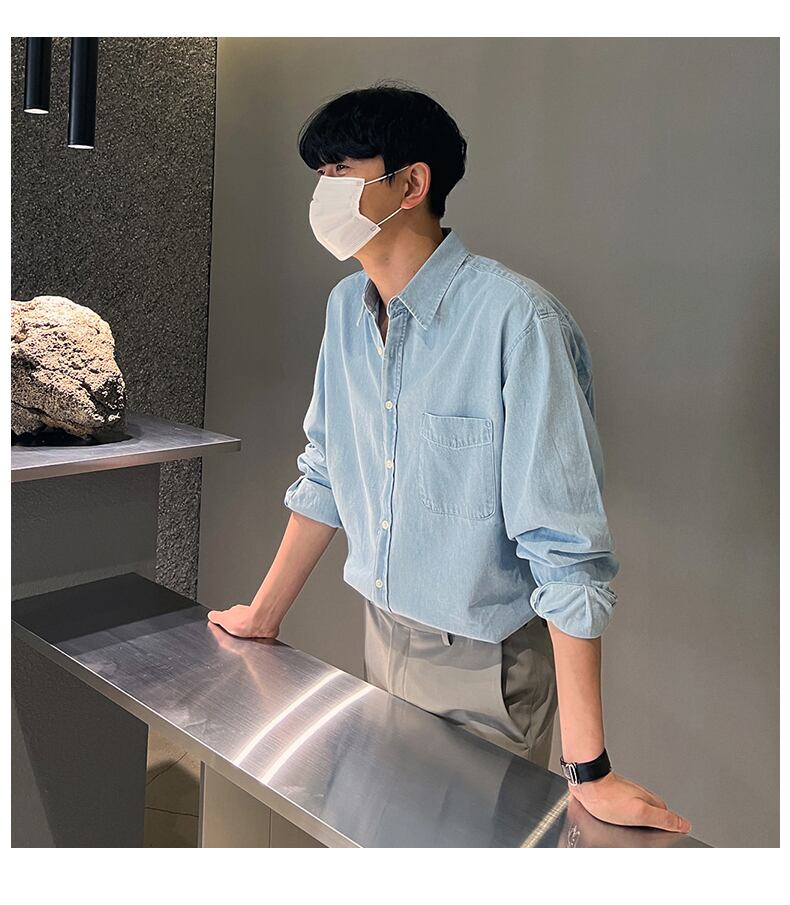 春の淡い色のデニムシャツメンズ長袖デザインニッチバージョンのトレンドインハンサムルーズトップコート ロング レッド スプリング 春物 BLUU38344668952