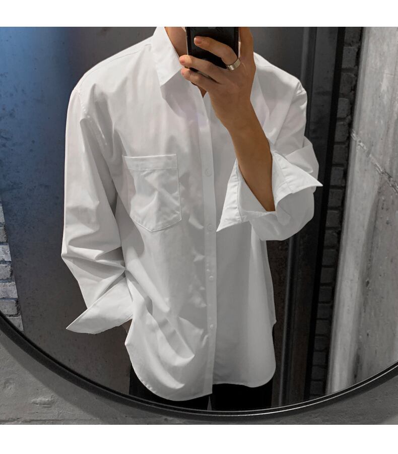 春の新作シャツメンズ長袖バージョンのタイドブランドトレンドルーズカジュアルホワイトシャツ香港スタイルeseオールマッチ ロング スプリング 春物 BLUU39326064184