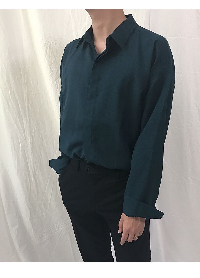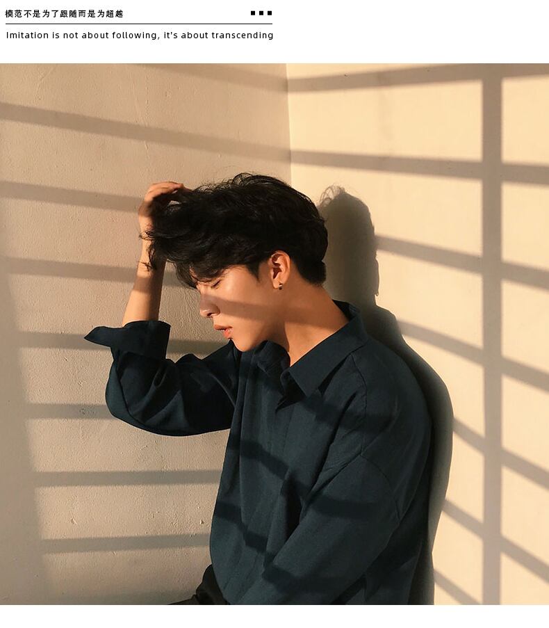 夏の新しい長袖アイスシルクシャツ男性ルフィアンハンサムバージョントレンドハンサムカジュアル香港スタイルシャツ薄いルーズeseスタイル ロング サマー 夏物 BLUU88070280906