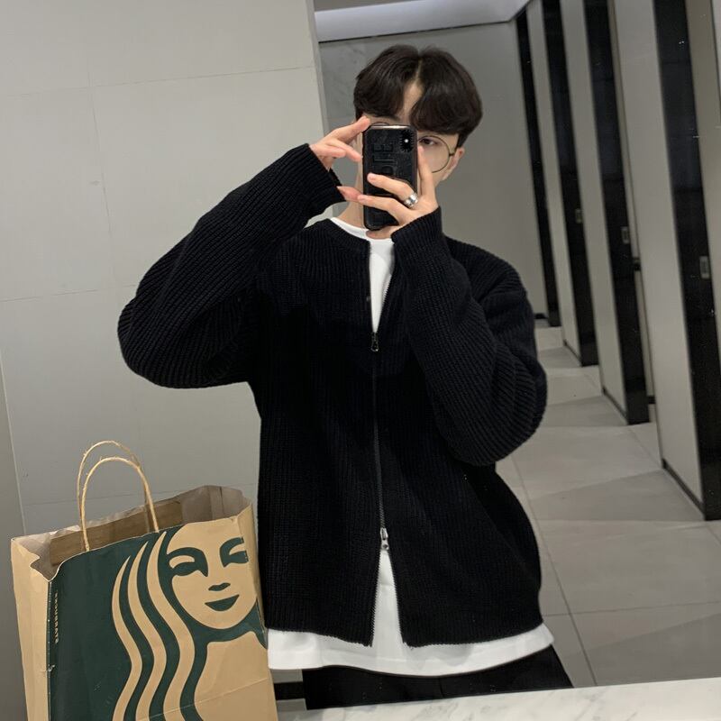 秋冬ニットカーディガンジャケットメンズルーズバージョントレンディハンサムカジュアルジッパーセーター香港スタイルレトロオールマッチ オータム 秋物 ウィンター 冬物 BLUU3324640663