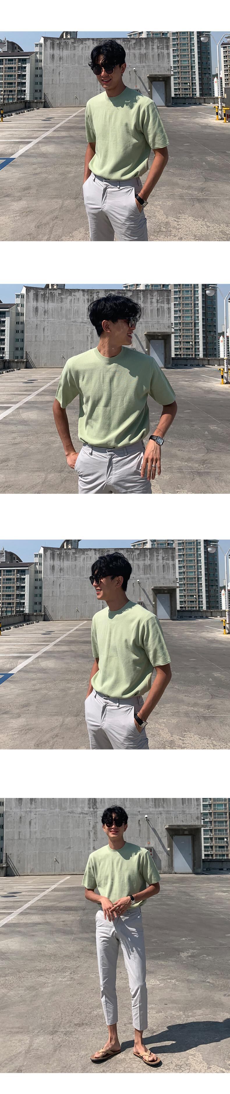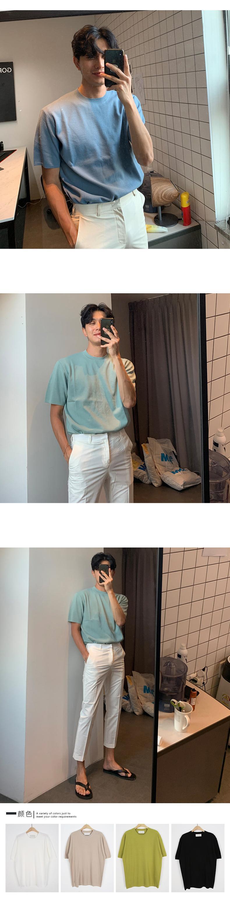 ラウンドネック半袖メンズタイドブランドルーズでワイルドな夏の薄手通気性無地ニットセーターTシャツ半袖ボトミングTシャツ サマー 夏物 Oネック ソリッドカラー BLUU11669437909