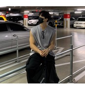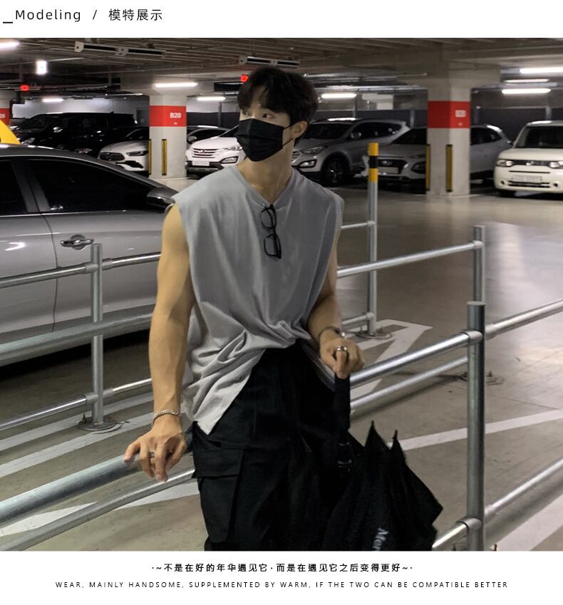 夏の新しいノースリーブベストメンズタイドブランドバージョンの無地Tシャツスポーツベストアウターウェアベストボトミングシャツ服 サマー 夏物 ソリッドカラー BLUU19569621176