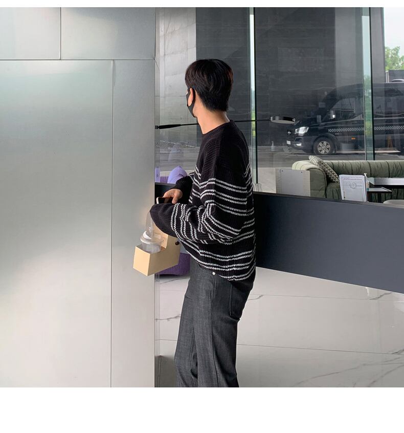香港スタイルのレトロプルオーバーラウンドネックセーターメンズ秋冬新バージョントレンドルーズカジュアルニットセータートップコート オータム 秋物 ウィンター 冬物 Oネック BLUU9550162271