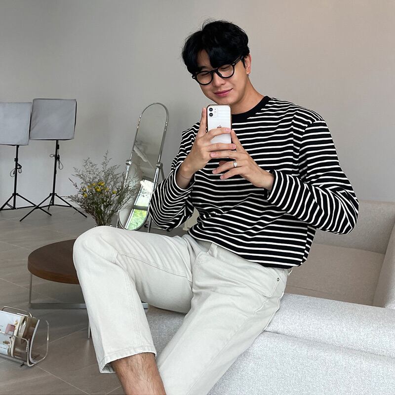 秋のストライプ長袖Tシャツメンズタイドブランドルーズ香港スタイルラウンドネックボトミングTシャツワイルドバージョンのトレンドトップ ロング オータム 秋物 Oネック BLUU24946750067