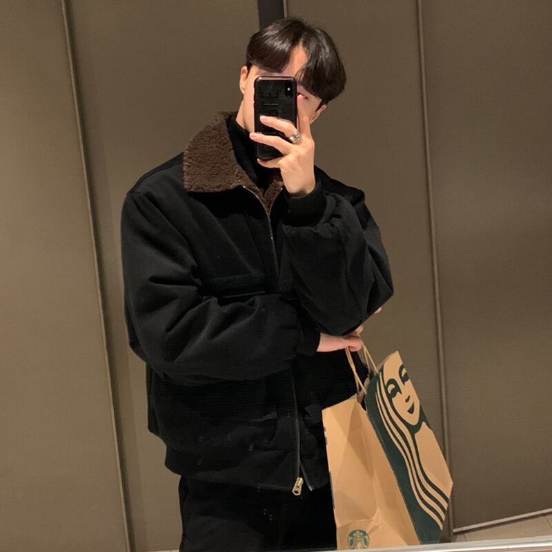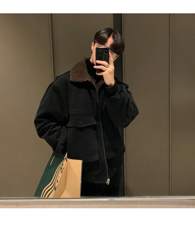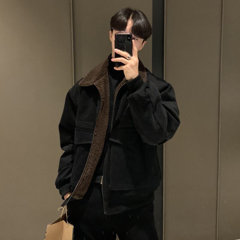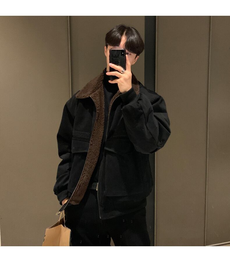 2021年冬の綿パッド入りメンズ冬の厚みとベルベットバージョントレンディなハンサムなラペルジャケットジャケット香港スタイルのパッド入りの服 コットン ウィンター 冬物 BLUU3000260438