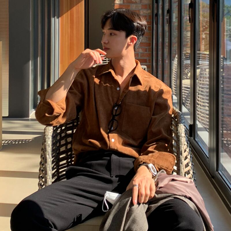 春のコーデュロイシャツメンズ長袖バージョントレンド香港スタイルレトロワイルドカジュアルシャツジャケット2022new ロング スプリング 春物 BLUU87650065598