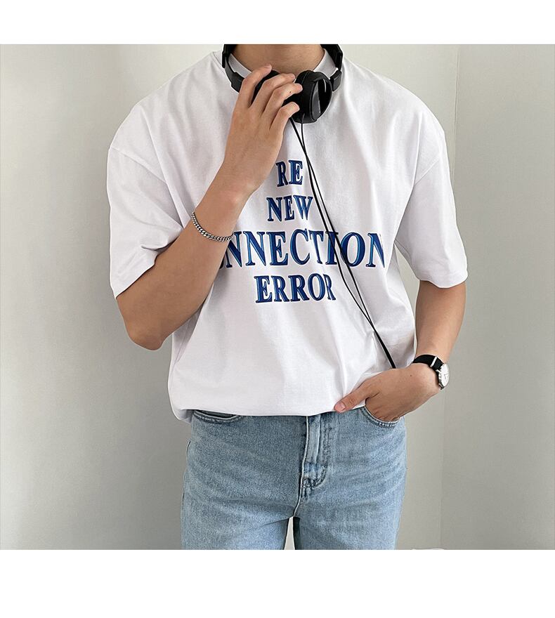 夏のレタープリントTシャツメンズコットンルーズタイドブランドシャツオールマッチラウンドネック半袖Tシャツトレンドオールマッチ サマー 夏物 Oネック BLUU33126306941