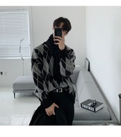 冬の厚みのあるラウンドネックセーターメンズルーズで怠惰なスタイルバージョントレンドダイヤモンドニットセータートップカジュアルジャケット ウィンター 冬物 Oネック BLUU3379258725