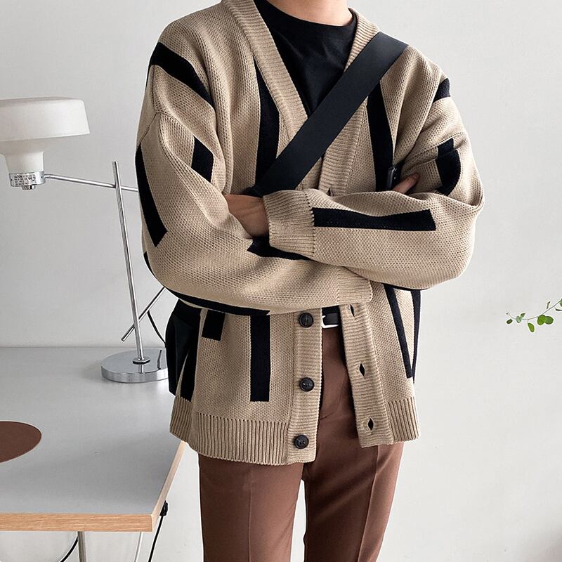 2022年新作Vネックセーターメンズルーズバージョントレンドパーソナリティハンサムカジュアルセーターカーディガンコートオールマッチ BLUU67325818714