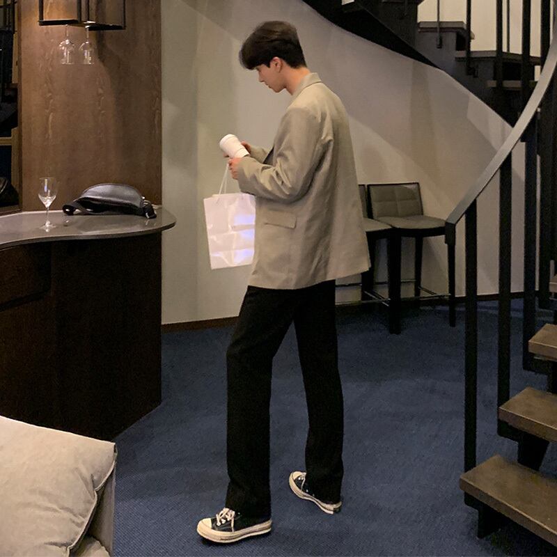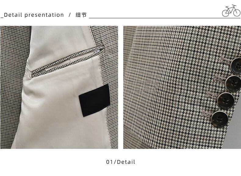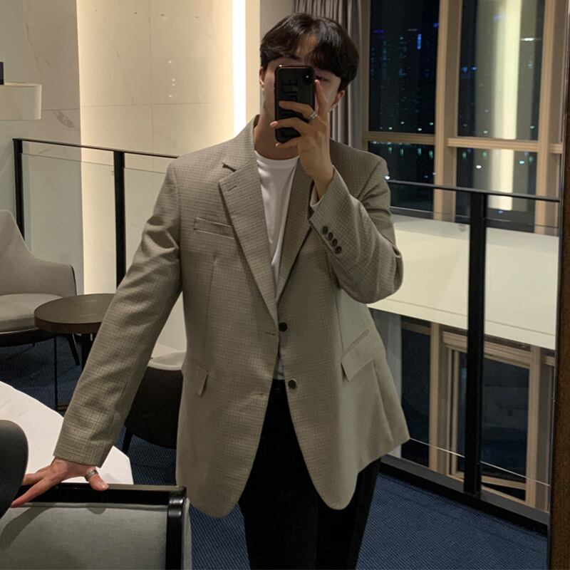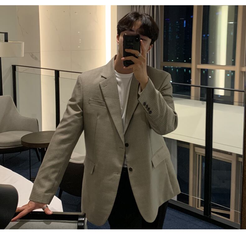 2022年の新しい千鳥格子のスーツジャケットメンズルーズバージョンのトレンドハンサムな香港スタイルのレトロなカジュアルスーツジャケット BLUU72135246770