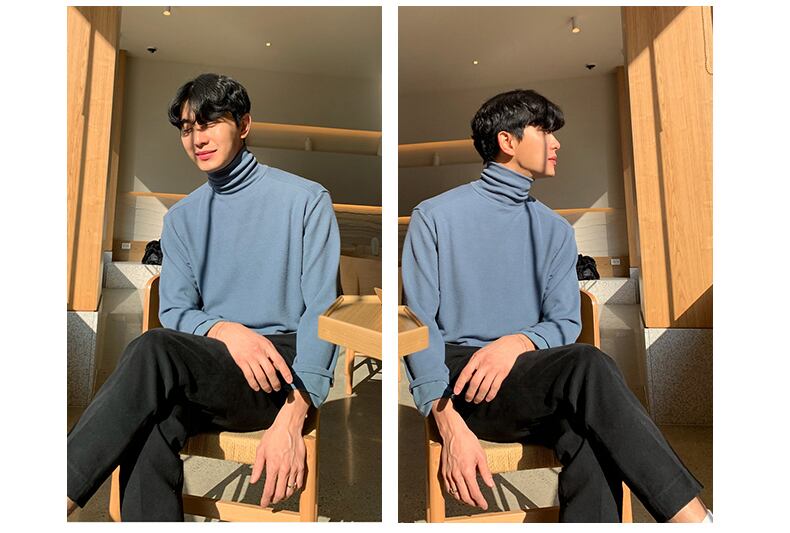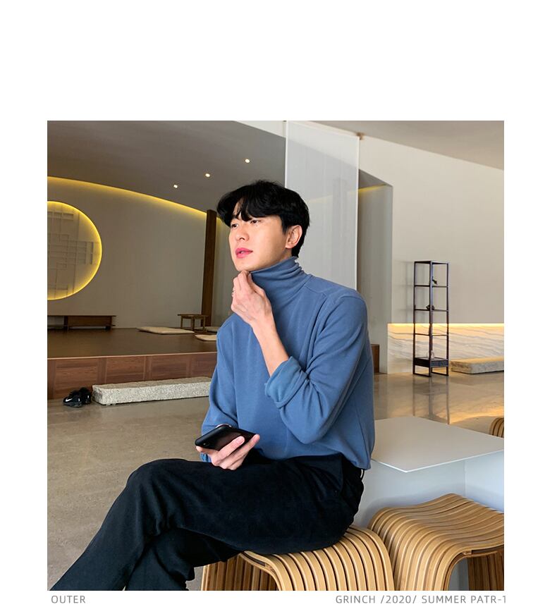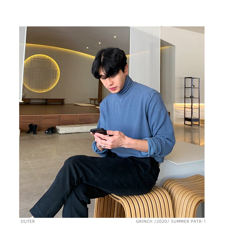 秋新作無地タートルネックTシャツメンズコットントレンドインナーボトミングシャツパイルカラー長袖カジュアル服 ロング オータム 秋物 ソリッドカラー BLUU47478264106