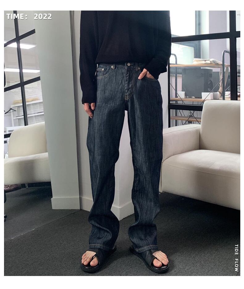 レトロジーンズメンズ2022スプリングルーズストレートロングパンツメンズタイドトレンドストリートワイドレッグパンツ 春物 ワイドパンツ BLUU67826417336