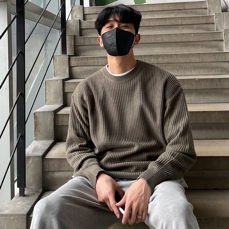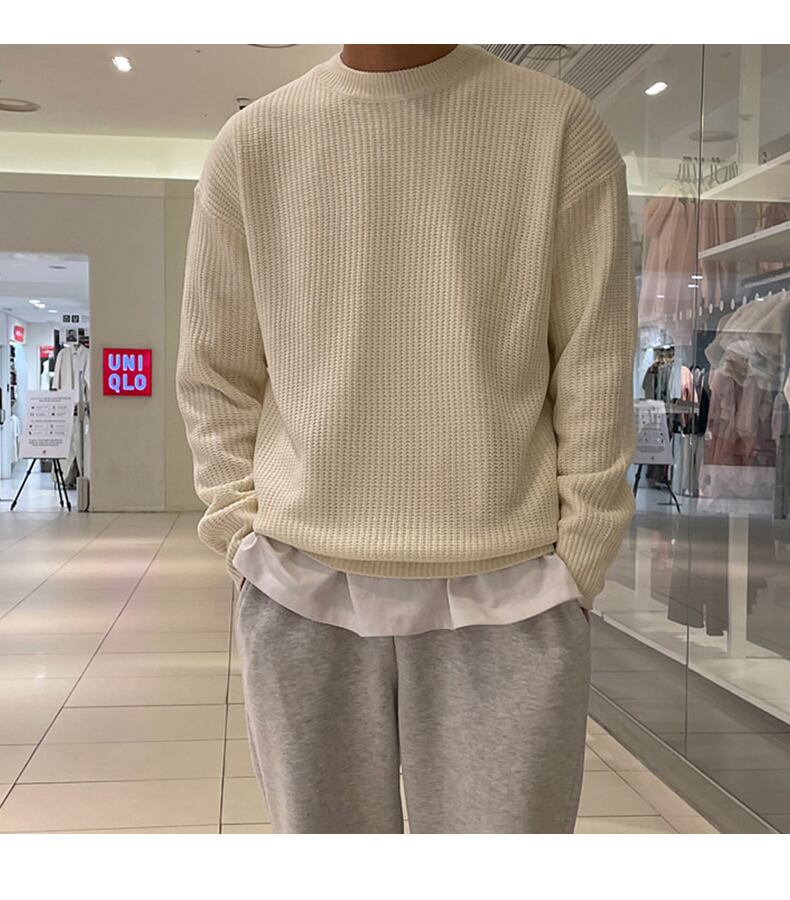 2022プルオーバーセーターメンズルーズトレンドオールマッチラウンドネックソリッドカラーニットセータージャケット Oネック BLUU24107627984