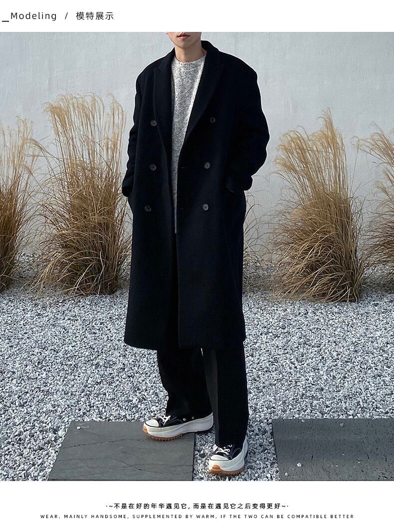 ウールコートメンズミドル丈厚手のオーバーザニーウインドブレーカートレンドルーズ多用途ダブルブレストウールコート BLUU56846234787