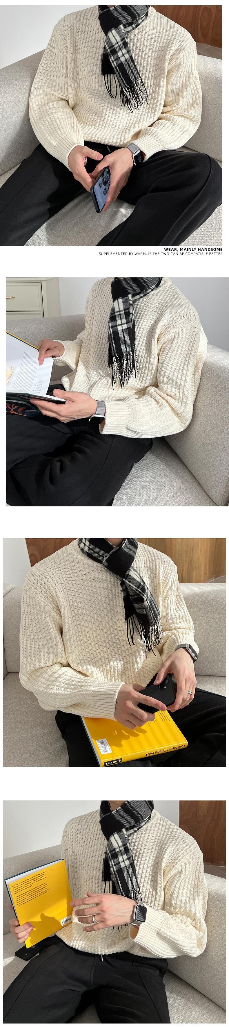 冬のクルーネックセーターメンズルーススタイルトレンド多用途ソリッドカラープルオーバーボトムレイヤーニットセータートップジャケット ウィンター 冬物 BLUU13292039655