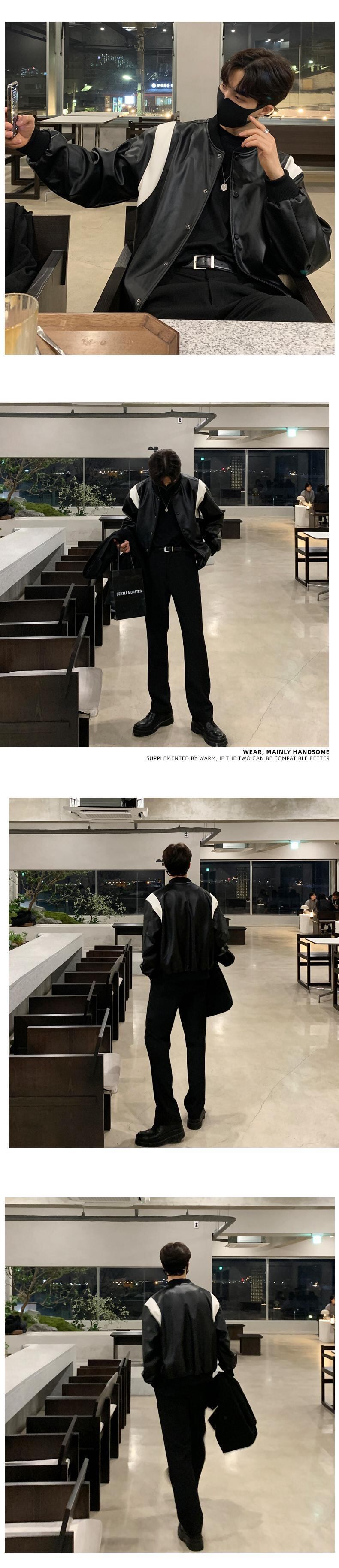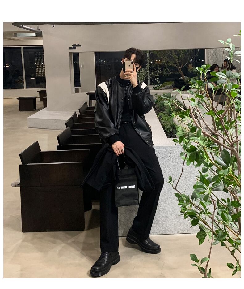 2022年春のレザージャケットメンズタイドブランドins野球ユニムオールマッチ香港スタイルレトロレザージャケットオートバイ服 スプリング 春物 BLUU99235069449