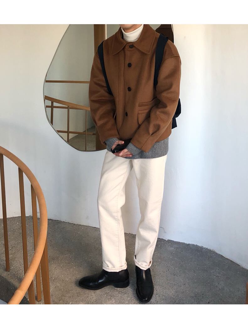 トレンド香港スタイルオールマッチレトロベージュカジュアルパンツタイドブランドのデニムパンツメンズワイドレッグストレートルーズバージョン BLUU66906890775